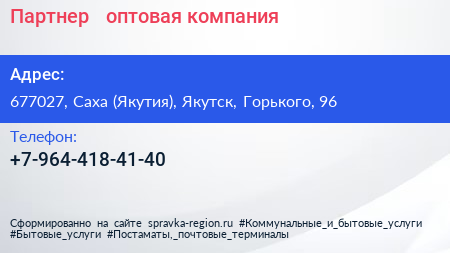 Партнер +, оптовая компания по адресу 677027, Саха (Якутия), Якутск, Горького, 96 в дальнейшем Организация, размещена в следующих категориях: