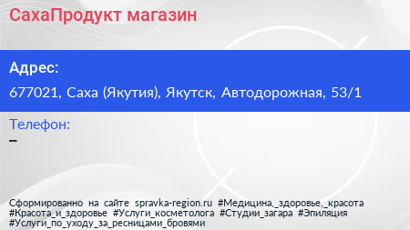 СахаПродукт, магазин по адресу 677021, Саха (Якутия), Якутск, Автодорожная, 53/1 в дальнейшем Организация, размещена в следующих категориях: