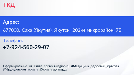 ТКД по адресу 677000, Саха (Якутия), Якутск, 202-й микрорайон, 7Б в дальнейшем Организация, размещена в следующих категориях: