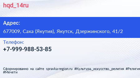 hqd_14ru по адресу 677009, Саха (Якутия), Якутск, Дзержинского, 41/2 в дальнейшем Организация, размещена в следующих категориях: