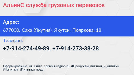 АльянС, служба грузовых перевозок по адресу 677000, Саха (Якутия), Якутск, Пояркова, 18 в дальнейшем Организация, размещена в следующих категориях: