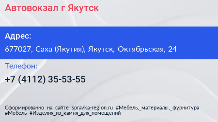 Автовокзал, г. Якутск по адресу 677027, Саха (Якутия), Якутск, Октябрьская, 24 в дальнейшем Организация, размещена в следующих категориях: