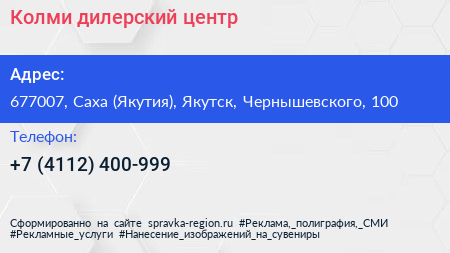 Колми, дилерский центр по адресу 677007, Саха (Якутия), Якутск, Чернышевского, 100 в дальнейшем Организация, размещена в следующих категориях: