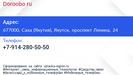 Doroobo.ru по адресу 677000, Саха (Якутия), Якутск, проспект Ленина, 24 в дальнейшем Организация, размещена в следующих категориях: