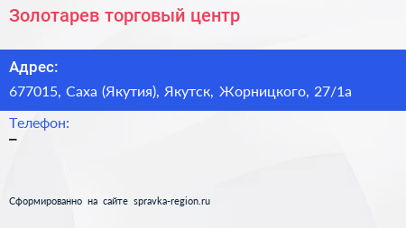 Золотарев, торговый центр по адресу 677015, Саха (Якутия), Якутск, Жорницкого, 27/1а в дальнейшем Организация, размещена в следующих категориях: