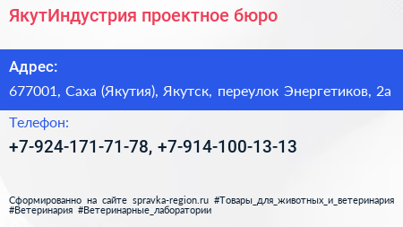 ЯкутИндустрия, проектное бюро по адресу 677001, Саха (Якутия), Якутск, переулок Энергетиков, 2а в дальнейшем Организация, размещена в следующих категориях:
