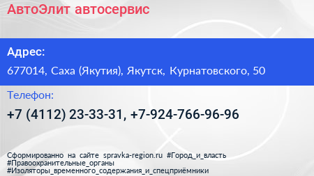 АвтоЭлит, автосервис по адресу 677014, Саха (Якутия), Якутск, Курнатовского, 50 в дальнейшем Организация, размещена в следующих категориях: