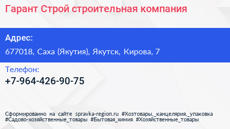 Гарант Строй, строительная компания по адресу 677018, Саха (Якутия), Якутск, Кирова, 7 в дальнейшем Организация, размещена в следующих категориях: