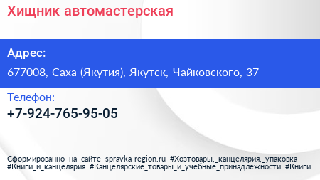 Хищник, автомастерская по адресу 677008, Саха (Якутия), Якутск, Чайковского, 37 в дальнейшем Организация, размещена в следующих категориях: