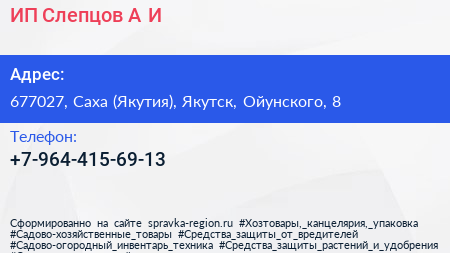 ИП Слепцов А.И. по адресу 677027, Саха (Якутия), Якутск, Ойунского, 8 в дальнейшем Организация, размещена в следующих категориях: