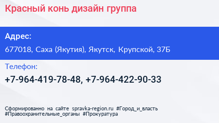 Красный конь, дизайн-группа по адресу 677018, Саха (Якутия), Якутск, Крупской, 37Б в дальнейшем Организация, размещена в следующих категориях: