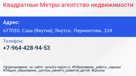 Квадратные Метры, агентство недвижимости по адресу 677010, Саха (Якутия), Якутск, Лермонтова, 124 в дальнейшем Организация, размещена в следующих категориях:
