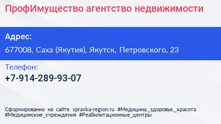 ПрофИмущество, агентство недвижимости по адресу 677008, Саха (Якутия), Якутск, Петровского, 23 в дальнейшем Организация, размещена в следующих категориях: