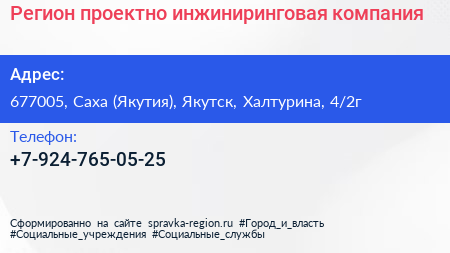 Регион, проектно-инжиниринговая компания по адресу 677005, Саха (Якутия), Якутск, Халтурина, 4/2г в дальнейшем Организация, размещена в следующих категориях: