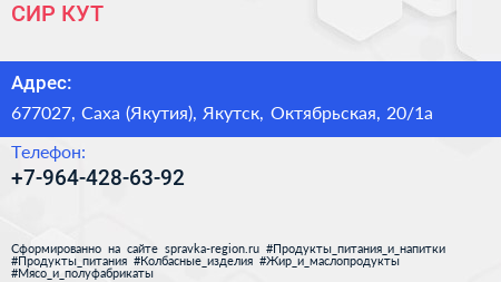 СИР-КУТ по адресу 677027, Саха (Якутия), Якутск, Октябрьская, 20/1а в дальнейшем Организация, размещена в следующих категориях:
