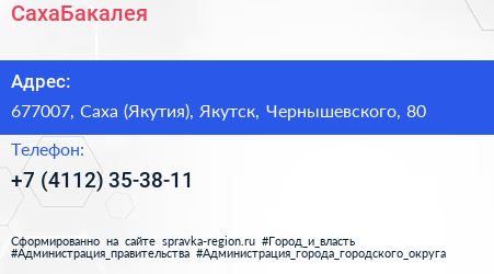 СахаБакалея по адресу 677007, Саха (Якутия), Якутск, Чернышевского, 80 в дальнейшем Организация, размещена в следующих категориях: