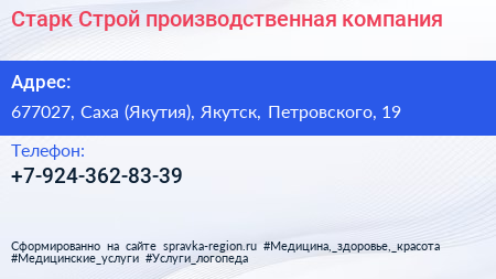 Старк Строй, производственная компания по адресу 677027, Саха (Якутия), Якутск, Петровского, 19 в дальнейшем Организация, размещена в следующих категориях: