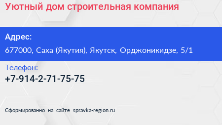 Уютный дом, строительная компания по адресу 677000, Саха (Якутия), Якутск, Орджоникидзе, 5/1 в дальнейшем Организация, размещена в следующих категориях: