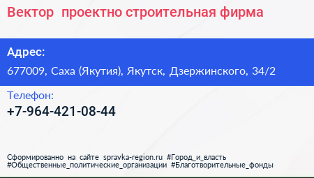 Вектор+, проектно-строительная фирма по адресу 677009, Саха (Якутия), Якутск, Дзержинского, 34/2 в дальнейшем Организация, размещена в следующих категориях: