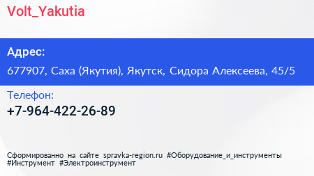 Volt_Yakutia по адресу 677907, Саха (Якутия), Якутск, Сидора Алексеева, 45/5 в дальнейшем Организация, размещена в следующих категориях: