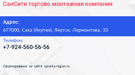 СанСити, торгово-монтажная компания по адресу 677000, Саха (Якутия), Якутск, Лермонтова, 33 в дальнейшем Организация, размещена в следующих категориях: