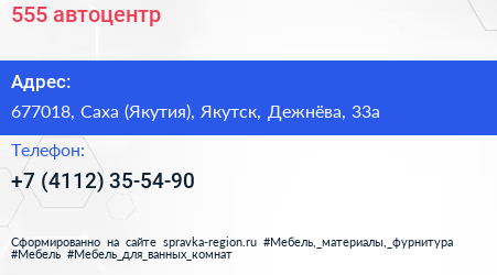555, автоцентр по адресу 677018, Саха (Якутия), Якутск, Дежнёва, 33а в дальнейшем Организация, размещена в следующих категориях: