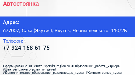 Автостоянка по адресу 677007, Саха (Якутия), Якутск, Чернышевского, 110/2Б в дальнейшем Организация, размещена в следующих категориях: