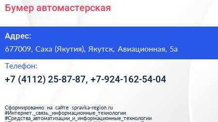 Бумер, автомастерская по адресу 677009, Саха (Якутия), Якутск, Авиационная, 5а в дальнейшем Организация, размещена в следующих категориях:
