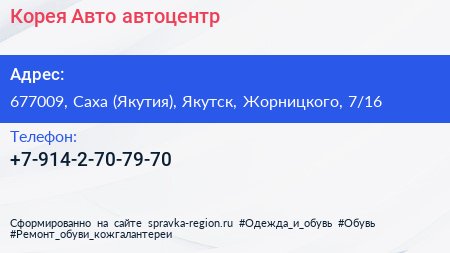 Корея Авто, автоцентр по адресу 677009, Саха (Якутия), Якутск, Жорницкого, 7/16 в дальнейшем Организация, размещена в следующих категориях: