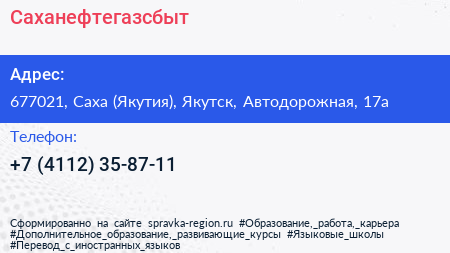 Саханефтегазсбыт по адресу 677021, Саха (Якутия), Якутск, Автодорожная, 17а в дальнейшем Организация, размещена в следующих категориях:
