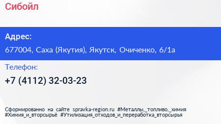 Сибойл по адресу 677004, Саха (Якутия), Якутск, Очиченко, 6/1а в дальнейшем Организация, размещена в следующих категориях: