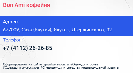 Bon Ami, кофейня по адресу 677009, Саха (Якутия), Якутск, Дзержинского, 32 в дальнейшем Организация, размещена в следующих категориях: