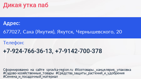 Дикая утка, паб по адресу 677027, Саха (Якутия), Якутск, Чернышевского, 20 в дальнейшем Организация, размещена в следующих категориях:
