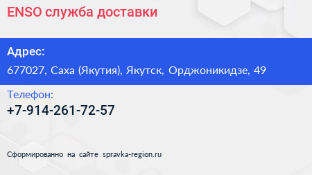 ENSO, служба доставки по адресу 677027, Саха (Якутия), Якутск, Орджоникидзе, 49 в дальнейшем Организация, размещена в следующих категориях: