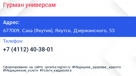 Гурман, универсам по адресу 677009, Саха (Якутия), Якутск, Дзержинского, 53 в дальнейшем Организация, размещена в следующих категориях: