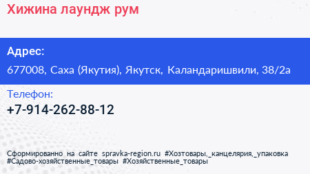 Хижина, лаундж-рум по адресу 677008, Саха (Якутия), Якутск, Каландаришвили, 38/2а в дальнейшем Организация, размещена в следующих категориях: