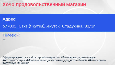 Хочо, продовольственный магазин по адресу 677005, Саха (Якутия), Якутск, Стадухина, 83/3г в дальнейшем Организация, размещена в следующих категориях: