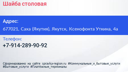 Шайба, столовая по адресу 677021, Саха (Якутия), Якутск, Ксенофонта Уткина, 4а в дальнейшем Организация, размещена в следующих категориях: