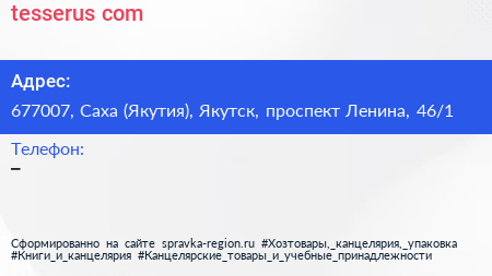 tesserus.com по адресу 677007, Саха (Якутия), Якутск, проспект Ленина, 46/1 в дальнейшем Организация, размещена в следующих категориях: