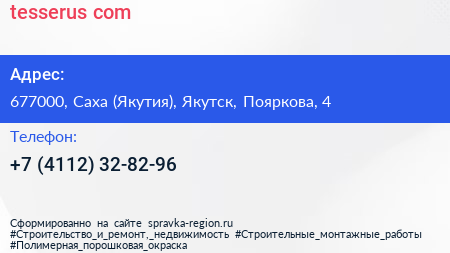 tesserus.com по адресу 677000, Саха (Якутия), Якутск, Пояркова, 4 в дальнейшем Организация, размещена в следующих категориях: