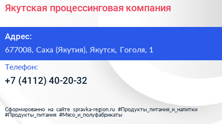Якутская процессинговая компания по адресу 677008, Саха (Якутия), Якутск, Гоголя, 1 в дальнейшем Организация, размещена в следующих категориях: