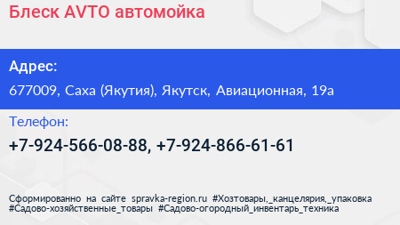 Блеск AVTO, автомойка по адресу 677009, Саха (Якутия), Якутск, Авиационная, 19а в дальнейшем Организация, размещена в следующих категориях: