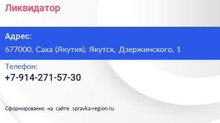 Ликвидатор по адресу 677000, Саха (Якутия), Якутск, Дзержинского, 1 в дальнейшем Организация, размещена в следующих категориях: