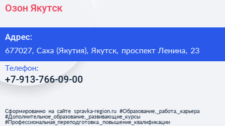 Озон Якутск по адресу 677027, Саха (Якутия), Якутск, проспект Ленина, 23 в дальнейшем Организация, размещена в следующих категориях: