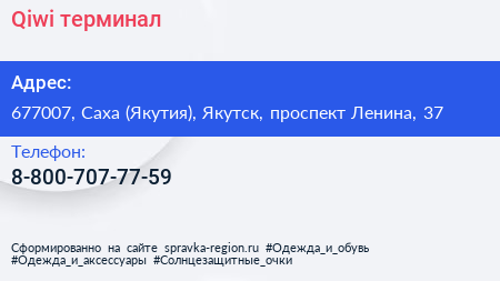Qiwi, терминал по адресу 677007, Саха (Якутия), Якутск, проспект Ленина, 37 в дальнейшем Организация, размещена в следующих категориях: