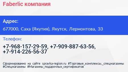 Faberlic, компания по адресу 677000, Саха (Якутия), Якутск, Лермонтова, 33 в дальнейшем Организация, размещена в следующих категориях: