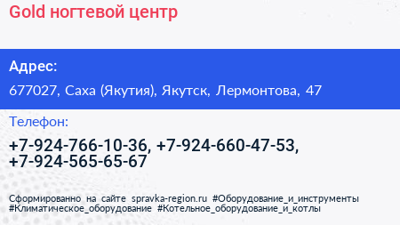 Gold, ногтевой центр по адресу 677027, Саха (Якутия), Якутск, Лермонтова, 47 в дальнейшем Организация, размещена в следующих категориях: