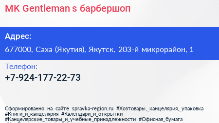 MK Gentleman`s, барбершоп по адресу 677000, Саха (Якутия), Якутск, 203-й микрорайон, 1 в дальнейшем Организация, размещена в следующих категориях: