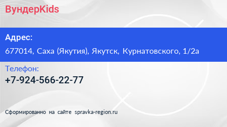 ВундерKids по адресу 677014, Саха (Якутия), Якутск, Курнатовского, 1/2а в дальнейшем Организация, размещена в следующих категориях:
