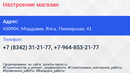 Настроение, магазин по адресу 430904, Мордовия, Ялга, Пионерская, 41 в дальнейшем Организация, размещена в следующих категориях: